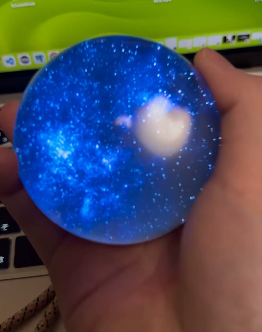 Elle ne s'y attendait pas. Sous le sapin de Noël, une boule lumineuse. Elle l'alluma… et les images apparurent : son voyage à Rome, les rires des enfants, sa chanson préférée. Elle sourit. Puis les larmes coulèrent. Nul besoin de mots, comme « Je t'aime », « Je pense à toi » ou « Je me souviens de toi ». Tout était là. Dans la lumière, dans le son, dans les souvenirs. Ce cadeau parle de lui-même.